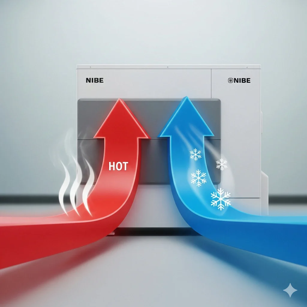Isı pompası denildiğinde çoğu kişinin aklına yalnızca ısınma gelir. Oysa NIBE ısı pompası, yaz aylarında da aktif soğutma yapabilen bir sistemdir. Temel prensip, ısı pompasının ters çevrilebilir yapıya sahip olmasıdır. Kışın dış ortamdan aldığı ısıyı içeriye taşıyan sistem, yazın bu döngüyü tersine çevirerek iç mekândaki fazla ısıyı dışarı atar.